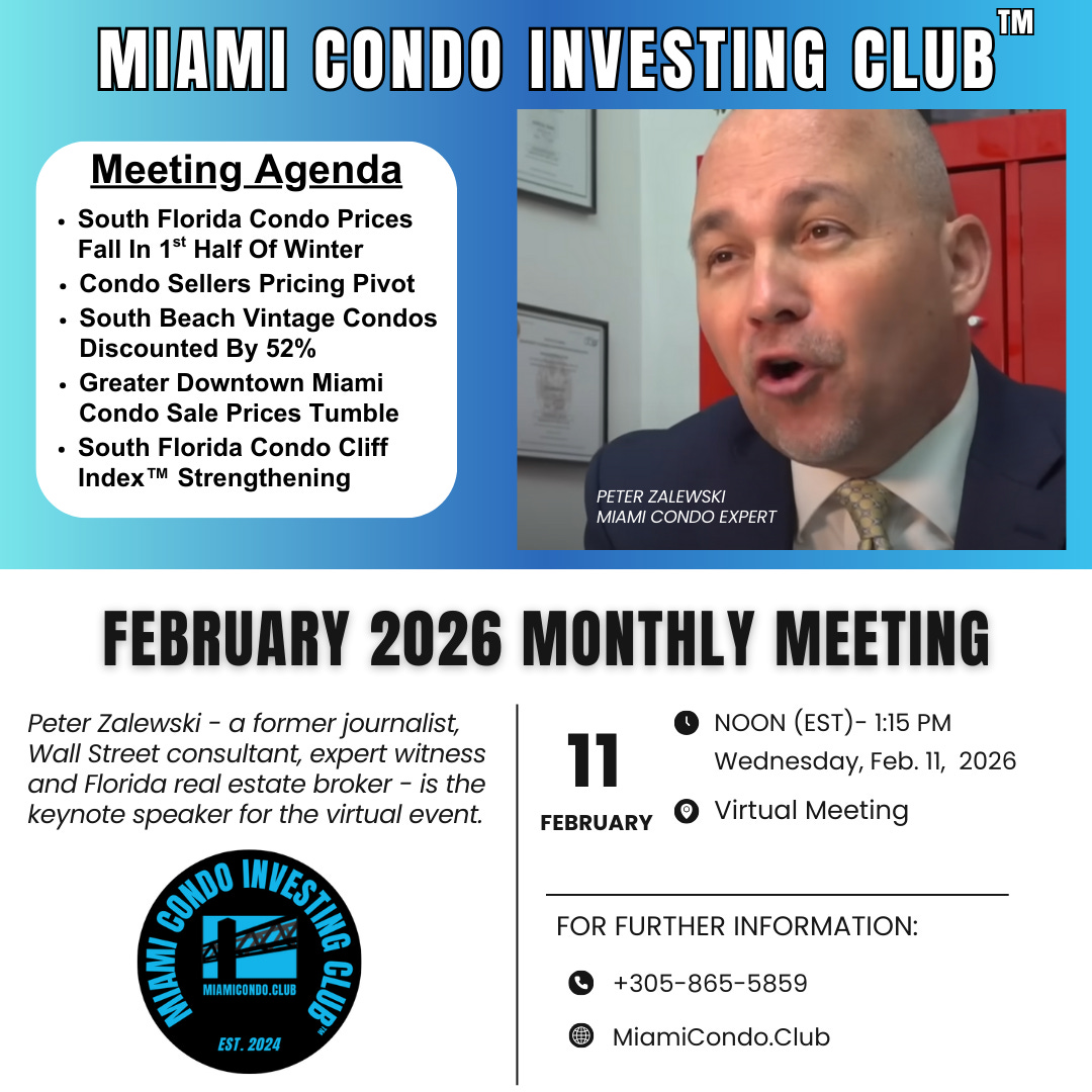 Each week, real estate advisor Daniel Hernandez of Compass Real Estate and longtime analyst Peter Zalewski of the Miami Condo Investing Club™ break down the housing market headlines, unpack policy changes and provide unfiltered analysis on everything from condo terminations to Vintage unit fire sales, luxury speculative homes to developer strategies.