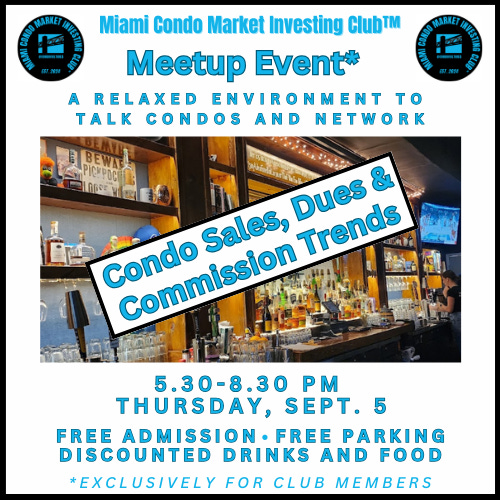 You are invited to the second Meetup event of the Miami Condo Market Investing Club™ at 5.30 pm Thursday, Sept. 5, at a neighborhood pub just west of Greater Downtown Miami.